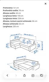 Vendo divano letto angolare IKEA modello FRIHETEN, (prezzo attuale 649€) colore beige, ideale per soggiorni o camere degli ospiti. Il divano è molto versatile e si trasforma in un letto matrimoniale in pochi istanti.