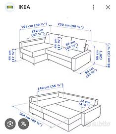 vendo divano letto e contenitore Ikea .Nelle foto ci sono tutte le misure. Disponibile da Giugno si trova a Fontanegli. Il divano presenta due piccoli buchi provocati da una sigaretta.
