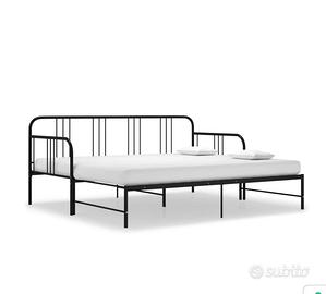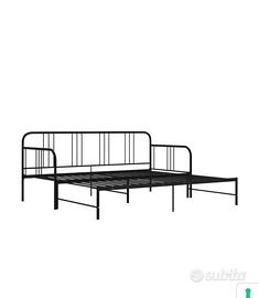 Divano letto in metallo, con secondo letto estraibile, in metallo nero con 1 materasso.