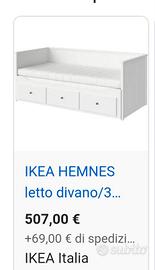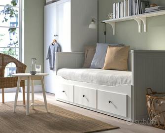 Vendo un comodissimo divanoletto Ikea Hemnes bianco usato pochissimo (stanza ospiti che diventerà stanza di un bambino) completo di due materassi singoli e 3 comodi cassetti integrati. Richiesto ritiro, non si effettuano spedizioni.