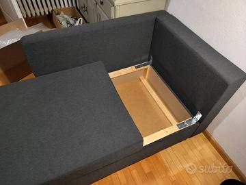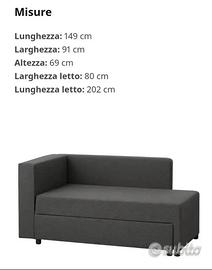 Chaise longue estensibile a divano letto con spazio portaoggetti inferiore, per le misure vedere ultima foto. È ben conservato, montato una sola volta. Attualmente ad Alba ma posso trasportarlo