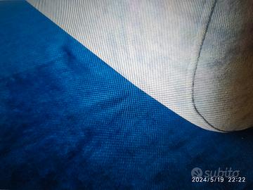 Divano letto ikea di design (anno 1990) in velluto azzurro/blu, completamente sfoderabile, smontabile in 2 pezzi (seduta e schienale), cuscino con fodera azzurro chiaro (bianco in foto).