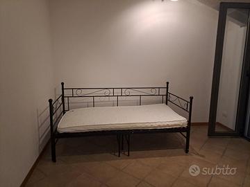 Vendo divano letto in ferro battuto nero, completo di materassi. La struttura è solida e in ottime condizioni: può essere usata come letto singolo oppure aperta per diventare un matrimoniale.