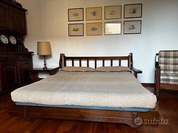 Il divano letto è in buone condizioni perchè è stato usato in una seconda casa. La struttura del moblie è in legno pieno e la rete è a doghe in legno. È completamente sfoderabile e lavabile. Il materasso è in spugna e volendo può essese sostituito.