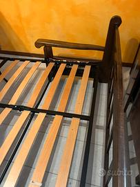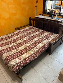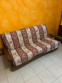 comodo divano letto stile Country sfoderanile struttura legno scuro rete metallo e doghe. no plastica