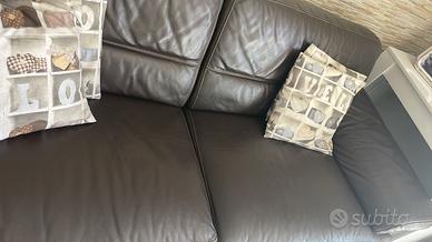 Vendo divano letto in pelle tre posti (misure 220x100 cm), più tavolino di vetro Calligaris grigio fumè.