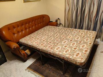Divano letto in vera pelle, con capitonnè, anni '80, in buone condizioni. Una vera occasione!