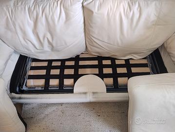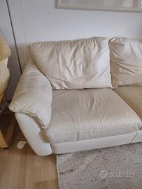 Divano letto in pelle colore panna. Molto ben tenuto. Nessun danno, nessuna macchia. Larghezza 213 cm, lunghezza 95, altezza 88 cm. Larghezza letto 135 cm. A San Lorenzo di Sebato (BZ) , vicino a Brunico.