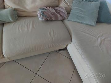 Divano letto in pelle in buone condizioni, con alcuni graffi e segni di usura sulla pelle, dimensioni 3m di lunghezza x 1,7m di profondità, lato chaise longue.