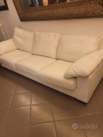 Divano letto bianco in pelle, con pouf incluso, di CONFALONE