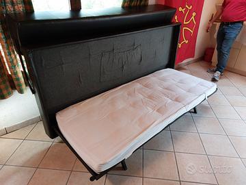 Divano letto in pelle nera vintage con gambe in ferro lunghezza 200 cm, larghezza 85cm, altezza 40. Altezza materasso 12 cm