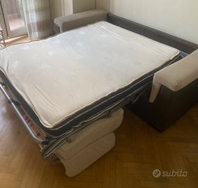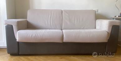 Per un soggiorno confortevole e di design, divano letto a 3 posti colore beige e marrone.