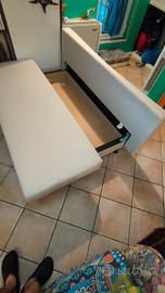 vendo divano letto a una piazza e 1/2 lunghezza 190 cm profondità a chiuso 85 cm, con vano interno, utilizzato pochissimo acquisto giugno 2024 a €250 in tessuto beige piccolissima macchiolina di circa 2 mm ingrandendo in foto di copertina sulla parte di seduta.