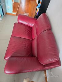Vendo divano a due posti, in vera pelle di colore bordeaux / cartier, con letto a scomparsa ad una piazza e mezza.