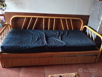 vendo divano letto in vimini singolo con letto estraibile, in buone condizioni, ha solo un bastoncino dello schienale spezzato, ma riparabile. reti buone.