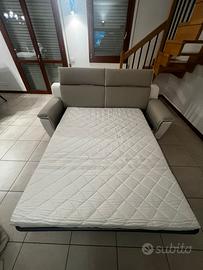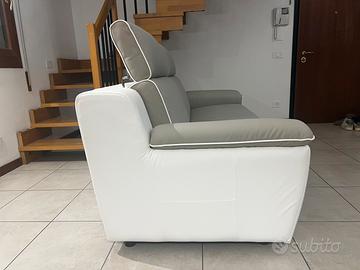 Vendo divano letto con un mese di vita. Divano della Italian Bed. Scocca di colore bianco in pelle antigraffio e seduta in micro fibra di colore grigio chiaro. Vendo per passaggio a divano più grande. Inclusi anche i 3 cuscini.