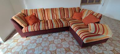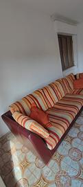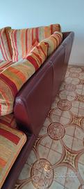 divano letto rivestito in pelle nella parte posteriore e in tessuto come da foto e letto estraibile nella parte centrale comprensivo di materassino.