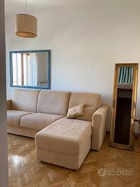 Divano letto LE FORME artigianale, colore camoscio tessuto lavabile antimacchia, con due cuscini. Prezzo originale 2.200