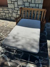 divano letto legno massello in condizioni pari al nuovo, usato pochissimo in seconda casa vacanze per brevissimi periodi, totalmente integro, sfoderabile, tappezzeria igienizzata e perfetta, aperto dispone di un abbondante posto letto singolo di fortuna, misure 90 x 90 x 145, ritiro in sede. Solo contatti telefonici