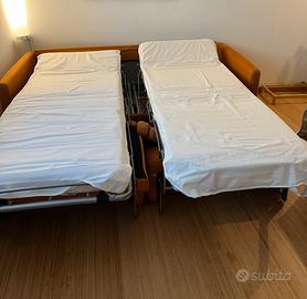 Vendo divano letto con la particolarita di poter estrarre i letti singolarmente. Apertura velocissima. Porta cuscino dietro gli schienali. Materassi e copri materasso inclusi. Si smonta completamente: braccioli, schienale, sedute e la base si separa in due moduli singoli. Comodo per il trasporto.