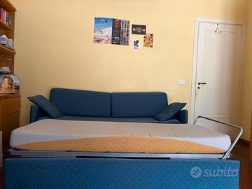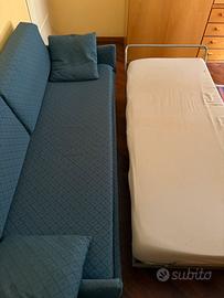 Vendo divano letto con letto aggiuntivo sottostante. Fodera rimuovibile sia per i cuscini che per la struttura del divano.