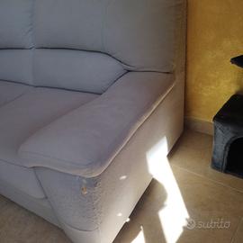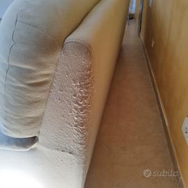 divano letto beige chiaro con penisola e parte sotto che lo fa diventare letto misure 240 * 150 il divano presenta difetti di usura dovuti ai gatti visibili in foto