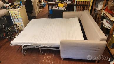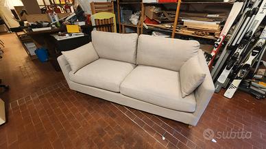 Divano letto matrimoniale marca Maison du Monde mod. Julian. Acquistato nel 2023 e usato solo un anno. Prezzo da nuovo 1.200 euro. Completo di cuscini e materasso, struttura letto a doghe di legno. Condizioni buone, sostituita una doga danneggiata. NO SPEDIZIONE! SOLO PER RITIRO A MILANO