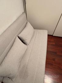 Divano letto grigio apribile design scandinavo Lungo 150 cm profondo 91 alto 82 - sono compresi 2 cuscini. tessuto lavabile in lavatrice