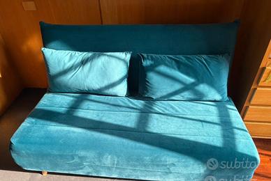 Divano letto Maison du monde ,modello NIO ,colore verde petrolio, 2 posti, L 150, in velluto.SOLO RITIRO IN LOCO A CARICO DELL ACQUIRENTE