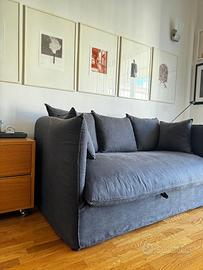 Divano letto marca Maisons du Monde modello Louvain in tessuto grigio antracite di lino, completamente sfoderabile. Materasso 10 cm.