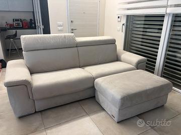 Divano letto USATO POCHISSIMO, mod. PALAZZA 4 posti POLTRONESOFA', 109x242x99, rivestimento in microfibra grigio seta, completo di rete letto antaribalta, materasso h 17 in poliuretano espanso alta densità con topper 160x200, pouf grande contenitore 48x102x62 rivestimento in microfibra.
