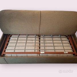 La seduta si ribalta in avanti trasformandosi in un letto con materasso pieghevole.