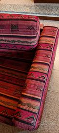 Divano letto tessuto stile etnico - sfoderabile - no strappi - no macchie. Già smontato (telaio pesante in metallo pezzo unico) - cuscini seduta, schienale e braccioli sono separati. Si montano sul telaio facilmente a incastro.