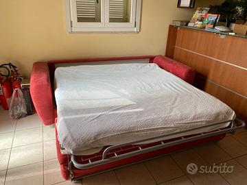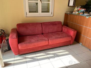 Divano letto matrimoniale completamente sfoderabile e smontabile. Rete metallica da 160x190 Dimensioni 220 cm larghezza x 0,90 cm altezza e cm 95 profondità. Rivestimento alcantara. Colore rosso o giallo ocra