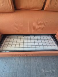 Causa trasferimento, vendo divano letto matrimoniale con rete in acciaio saldata. Originale nel suo colore giallo compresi due cuscini d arredamento. Usato pochissimo.