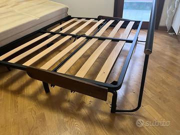 Divano letto matrimoniale con rete a doghe in legno e materasso incluso. Struttura completa, funzionante e senza parti rotte.