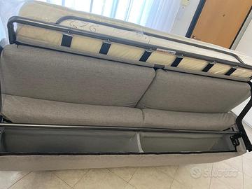 Vendo divano letto ottime condizioni come nuovo Rivestimento in tessuto con bordino in tinta di colore grigio con piedini Misure cm 211 profondo cm 104 altezza cm 90 Misure materasso memory cm 160x192 alto cm 15 Ritiro a carico dell’acquirente