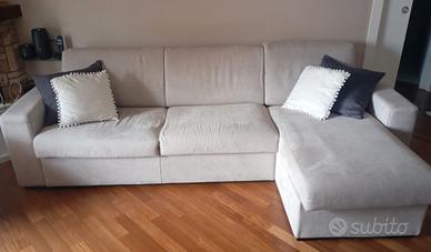 divano letto matrimoniale con chaise longue contenitore compreso di materasso matrimoniale sfoderabile marca dondi salotti compreso di materasso e porta guanciali colore grigio chiaro misura profondità massima 160 profondità seduta 90 lunghezza 274..