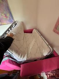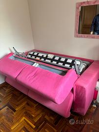 Vendo divano letto matrimoniale color fucsia – struttura in metallo, comodo e robusto
