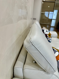 Vendo bellissimo divano letto matrimoniale modello "Svolta", dalle forme compatte e dal design armonico, ideale anche per ambienti di dimensioni contenute. Il divano ha 11 anni di vita ma è stato tenuto in maniera maniacale (come visibile in foto). La struttura è solida e il rivestimento è in VERA PELLE di ottima qualità, con eleganti finiture e bordino in pelle. PUNTI DI FORZA: Materasso NUOVO: La funzione letto non è mai stata utilizzata. Come si vede dalle foto, il materasso è ancora sigillato nel suo cellophane originale! Comfort elevato: Poggiatesta regolabili per il massimo relax. Praticità: Si trasforma in un vero e proprio letto matrimoniale in pochissimi gesti e dispone di un comodissimo vano portacuscini a scomparsa. MISURE EXACTE: Larghezza: 211 cm Profondità: 101 cm Altezza: 78 cm (96 cm con poggiatesta alzati) CONDIZIONI DI VENDITA: Vendo per cambio casa. Ritiro a mano a Salerno. Lo smontaggio (se necessario) e il trasporto sono interamente a carico dell'acquirente. Prezzo leggermente trattabile se la transazione è rapida. Contattatemi per qualsiasi informazione o per venire a vederlo di persona.