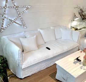 Il suo design lineare e contemporaneo, unito al raffinato rivestimento in lino lavato bianco, crea un'atmostera perfetta per ogni ambiente.