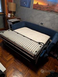 Vendo divano letto acquistato per ospitare degli ospiti che mai ci sono stati a casa. Il divano chiuso misura 210x100 mentre aperto (tutto il meccanismo è in acciaio ed è possibile aprirlo o chiuderlo con una sola mano grazie al suo sistema di molle) il materasso misura 140x190.