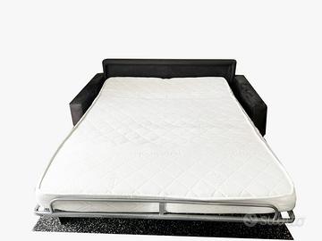Si trasforma facilmente in un comodo letto matrimoniale con rete termosaladata, dotato di portacuscini e materasso incluso. Struttura solida e meccanismo perfettamente funzionante. Imbottitura comoda.