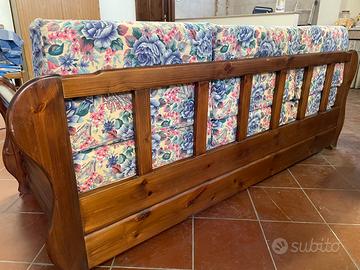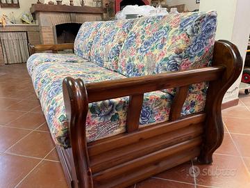 Divano letto matrimoniale stile country, artigianale, tutta la struttura è interamente in legno massello. Cuscini seduta e schienali tutti sfoderabili , materassi mai usati. Ingombro divano chiuso : 210x86 Dimensioni letto doppio : 187x160 Tutto in ottimo stato, inutilizzato da diversi anni , pari al nuovo. Posizionato piano garage accessibile con furgone, no scale.