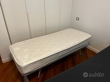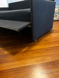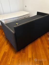 Propongo divano letto matrimoniale sfoderabile con doghe in legno su entrambe le reti e materasso alto circa 20 cm. Il divano misura 198 cm (lunghezza)*98 cm (larghezza). I materassi misurano 185 cm* 88 cm. La fodera grigia è in cotone. Divano letto comprato per ospiti e usato poco. Zona: Udine centro.