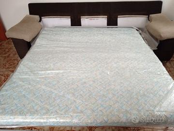 Divano letto matrimoniale con rete con doghe in legno. Compreso di materasso richiudibile all'interno del divano.