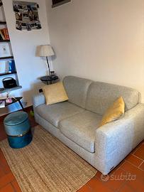 Vendesi divano letto Poltronesofà color ghiaccio, 2 posti, per trasloco in casa già arredata. I due cuscini gialli sono inclusi.
