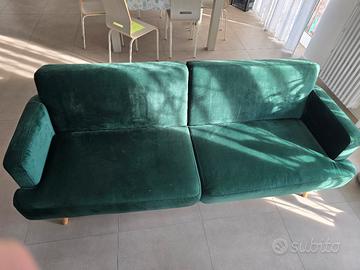 Il colore verde di tendenza e la morbidezza del velluto rendono questo divano letto un elemento distintivo per il soggiorno.
