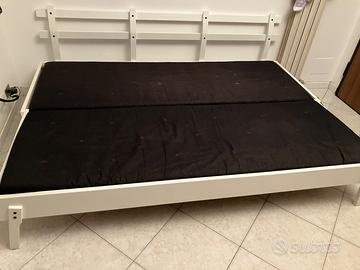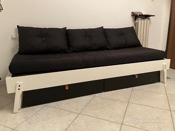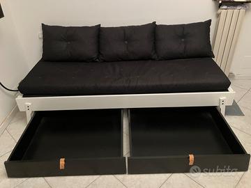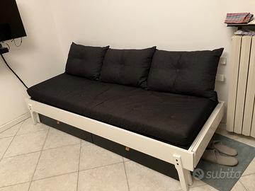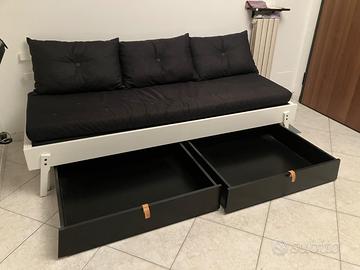 Vendo divano letto IKEA PS 2012 in ottime condizioni, con struttura interamente in legno (doghe comprese) e futon blu scuro tendente al nero.