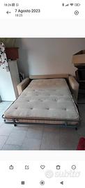 Il divano si trasforma in letto una piazza e mezza ed è in buone condizioni, senza strappi o macchie evidenti.